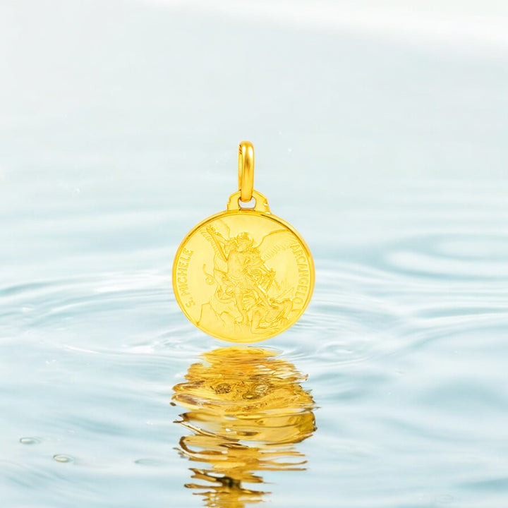 The 18K Yellow Gold Small San Miguel Medal is ideal for gifting on special occasions, such as birthdays, anniversaries, or religious celebrations. Its delicate yet meaningful design encapsulates a message of protection and guidance, as San Miguel is known to be a defender and spiritual protector.