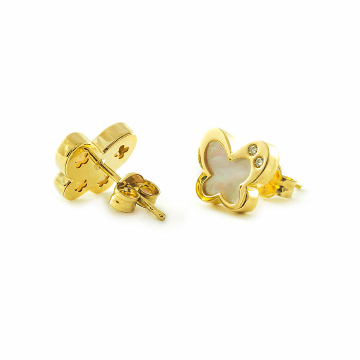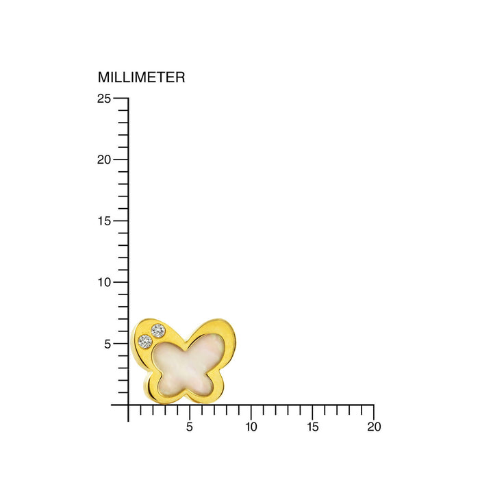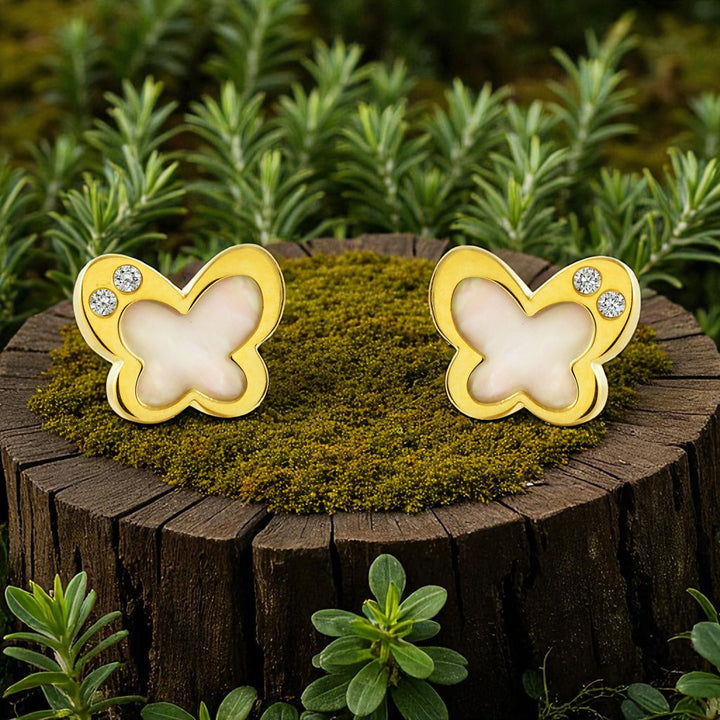 Pendientes Niña Mujer oro Amarillo 9K Mariposa Nácar Madre Perla Blanco Brillo