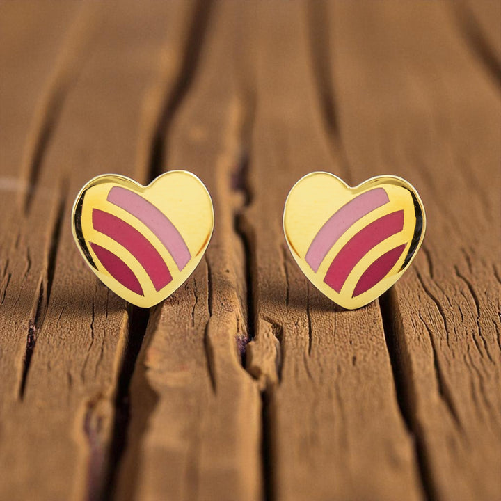 9ct Yellow Gold Heart Multicolor Enamel Girls Earrings shine