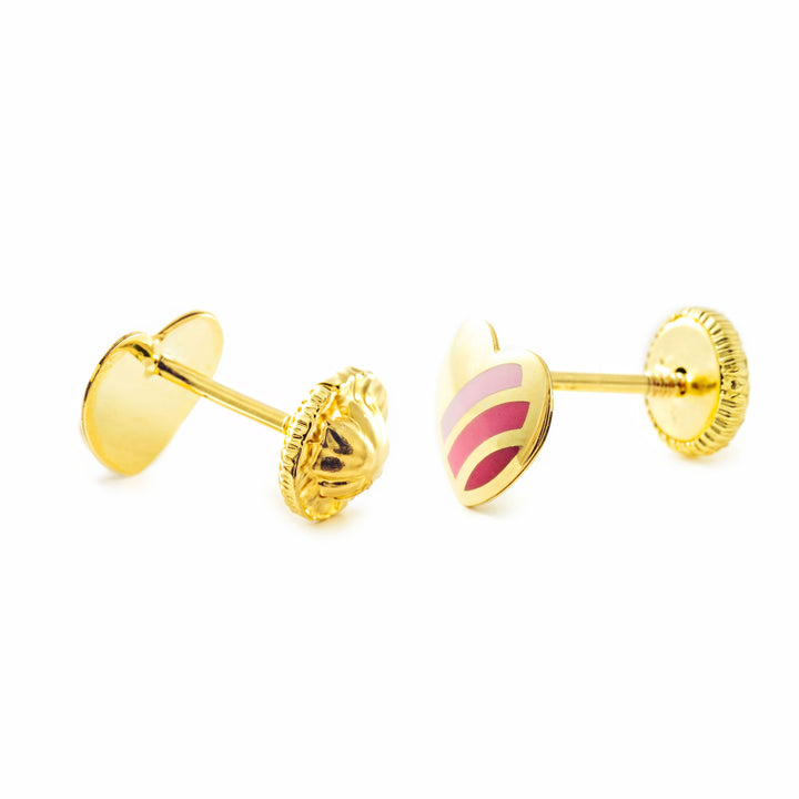 Pendientes Niña oro Amarillo 9K Corazón Esmalte Multicolor Brillo