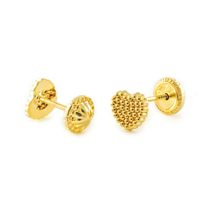 9ct Yellow Gold Heart Shine Earrings Girls Women's
