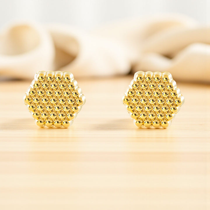 9ct Yellow Gold Hexagon Shine Women's Girls Earrings