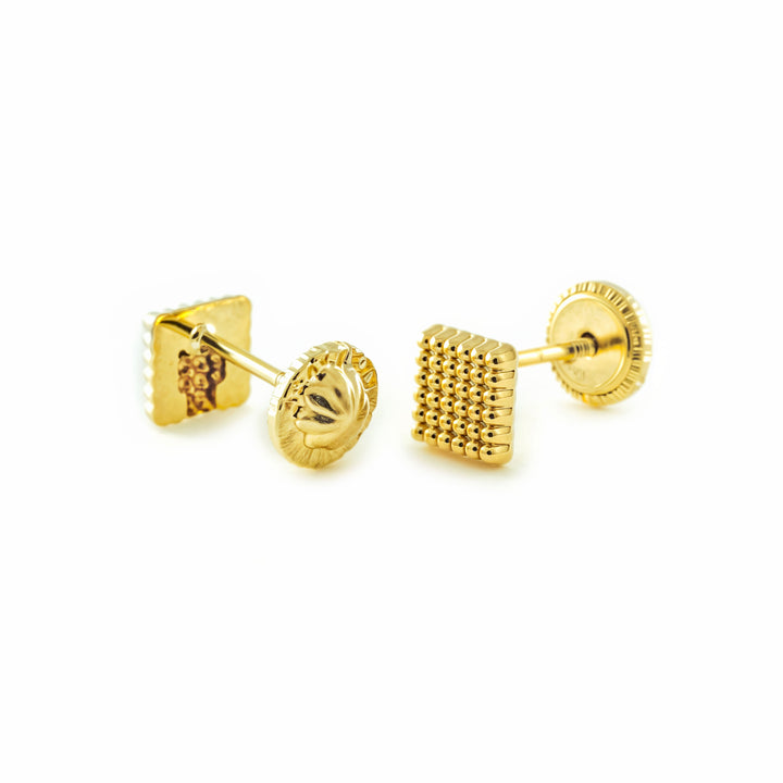 Pendientes Niña Mujer oro Amarillo 9K Cuadrado Brillo