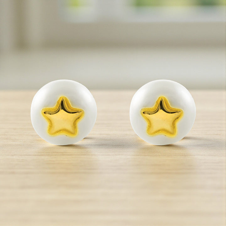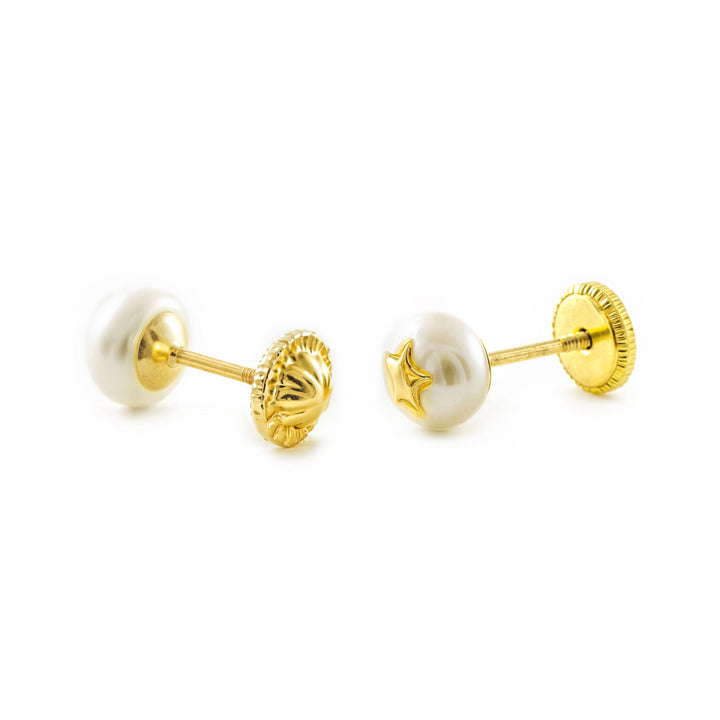 9ct Yellow Gold Star Natural Pearl Button Girls Earrings shine