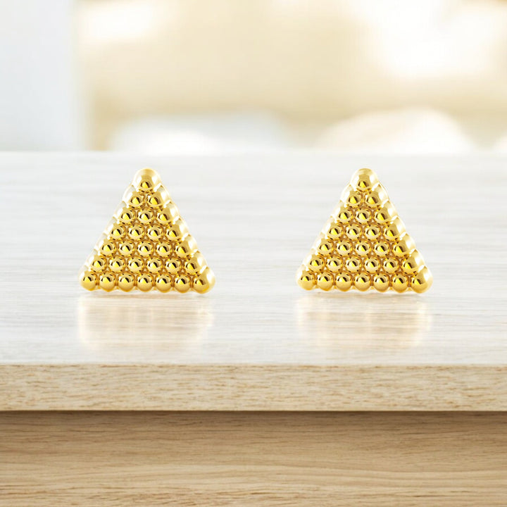 Discover the subtle elegance of the 9K yellow gold Earrings for Girls and Women with a triangle design and shiny finish. Their geometric and modern shape adds a sophisticated and contemporary touch, ideal for any special occasion or for everyday wear. These earrings are a perfect choice for those seeking a delicate and timeless accessory.