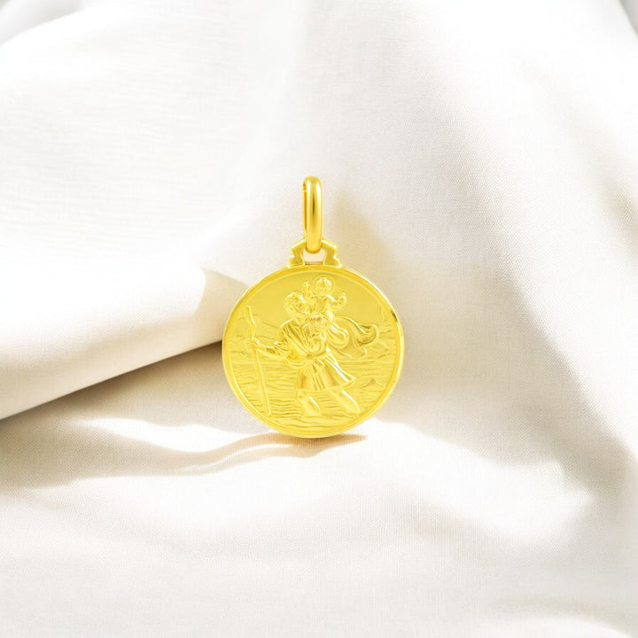 Medalla Niña Mujer oro Amarillo 9K Redondo San Cristobal 14 mm Mate y Brillo