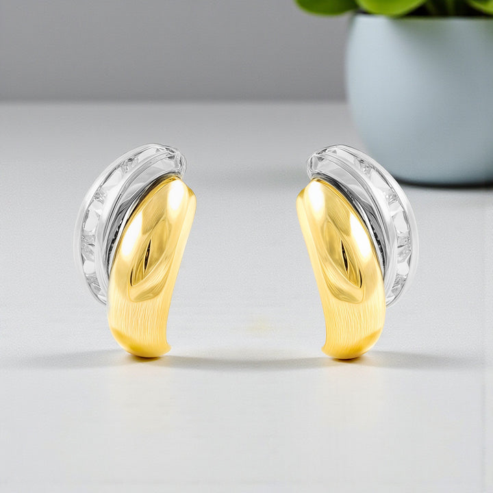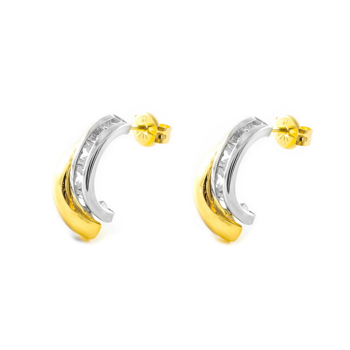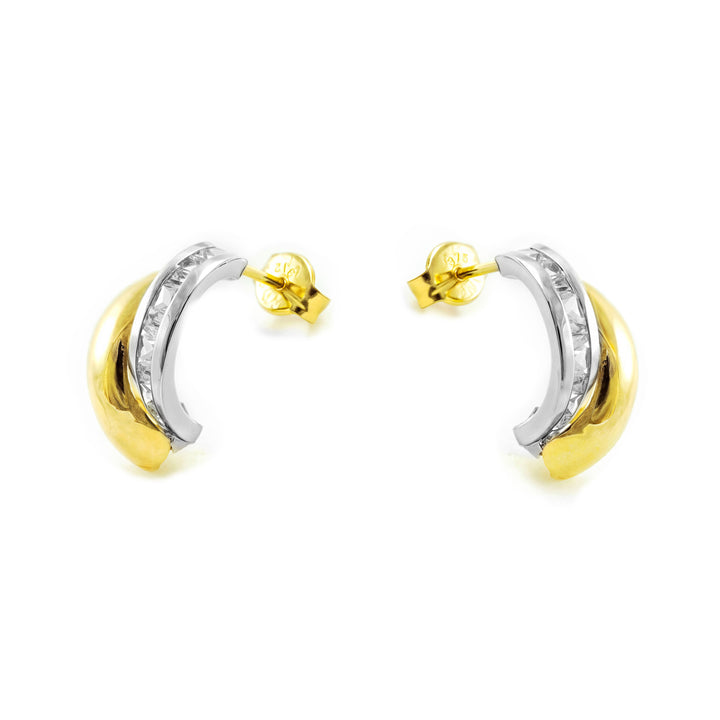 Pendientes Mujer oro Bicolor 9K Bandas Arco Piedra Circonita Brillo