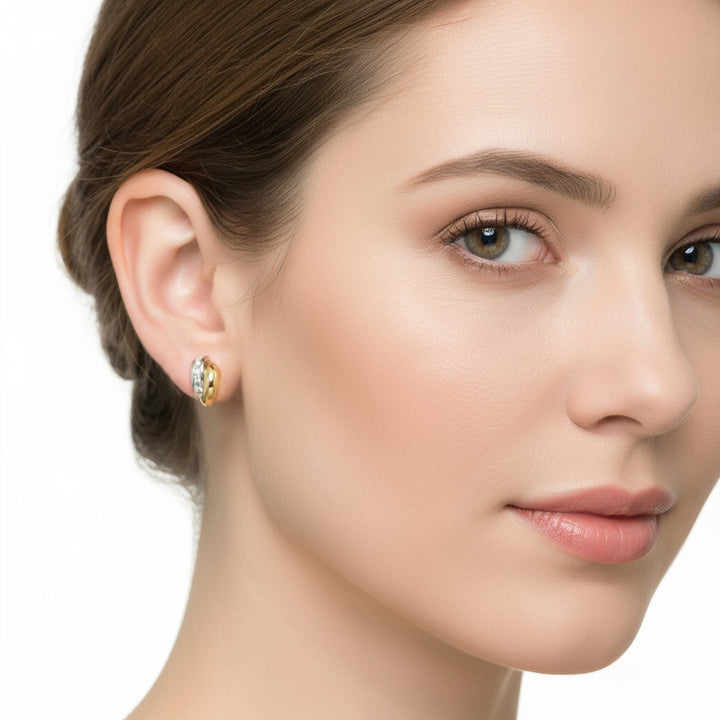Pendientes Mujer oro Bicolor 9K Bandas Piedra Circonita Brillo