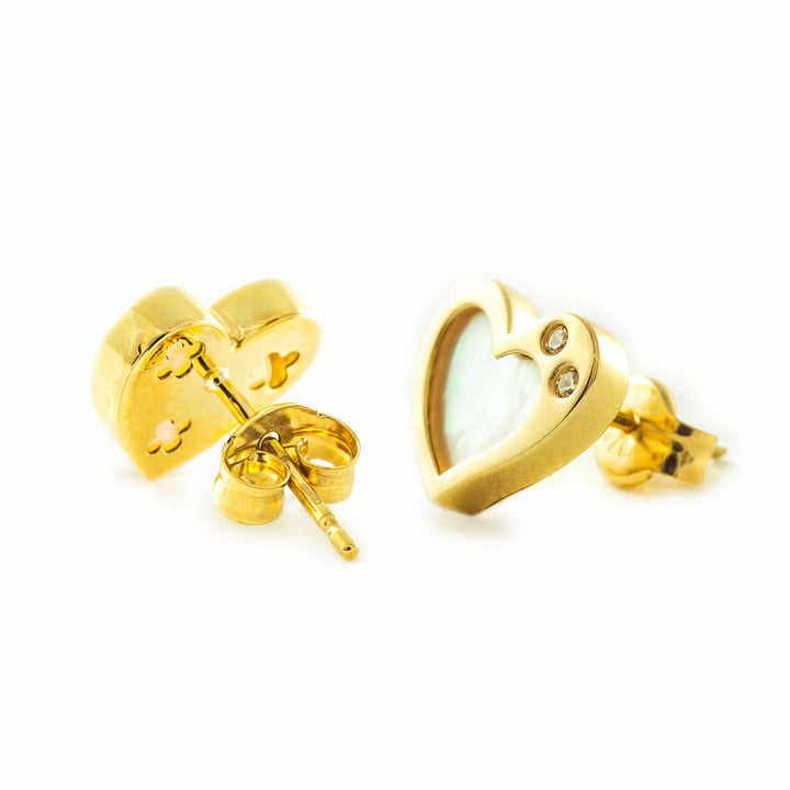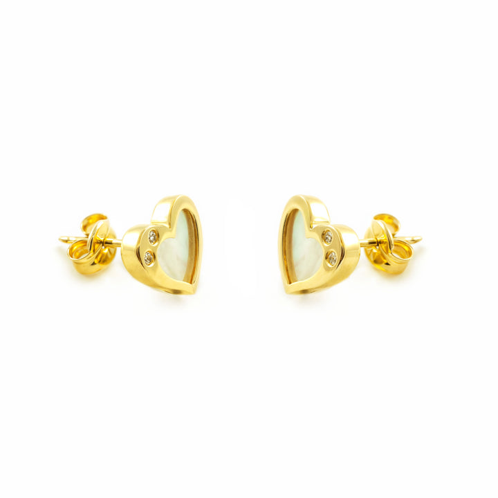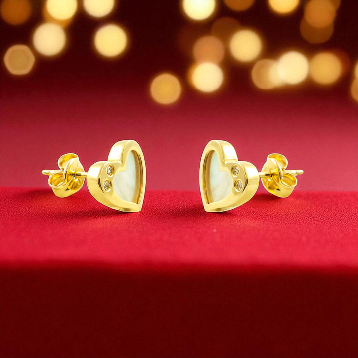 Pendientes Niña Mujer oro Amarillo 9K Corazón Nácar Madre Perla Blanco Brillo
