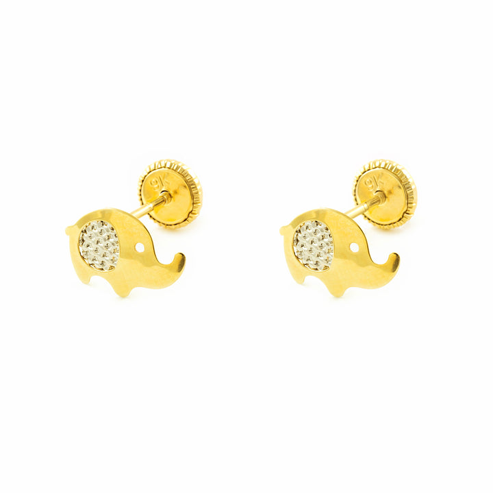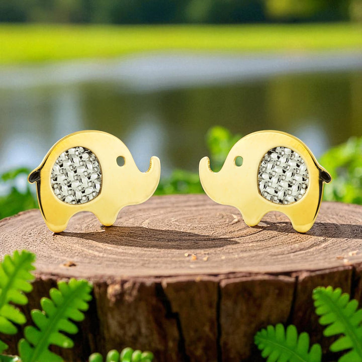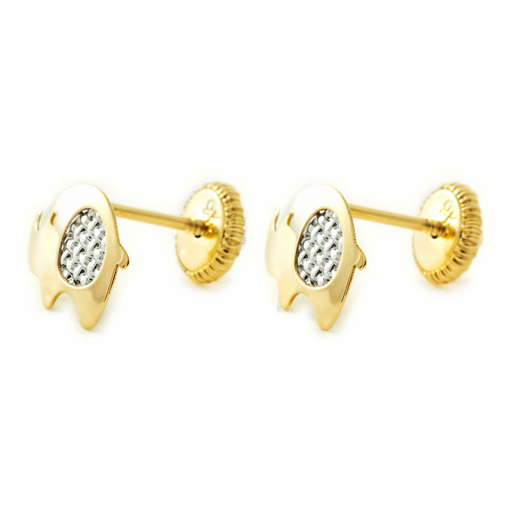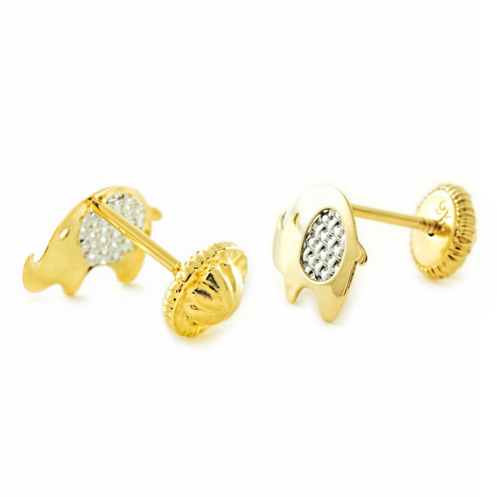 Pendientes Niña Mujer oro Bicolor 9K Elefante Brillo y Textura