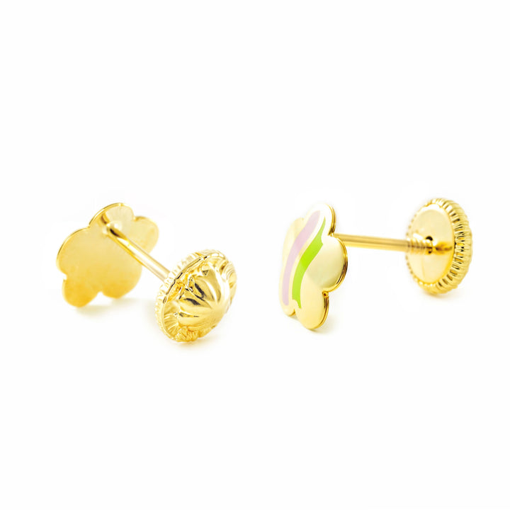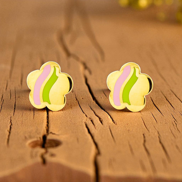 Pendientes Niña oro Amarillo 9K Flor Esmalte Multicolor Brillo