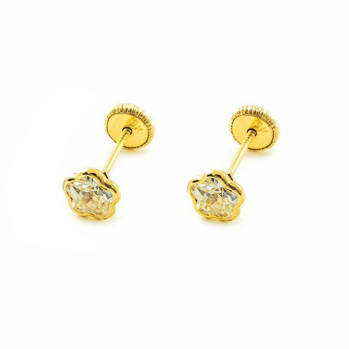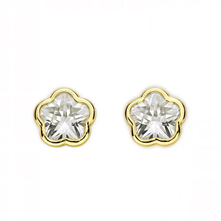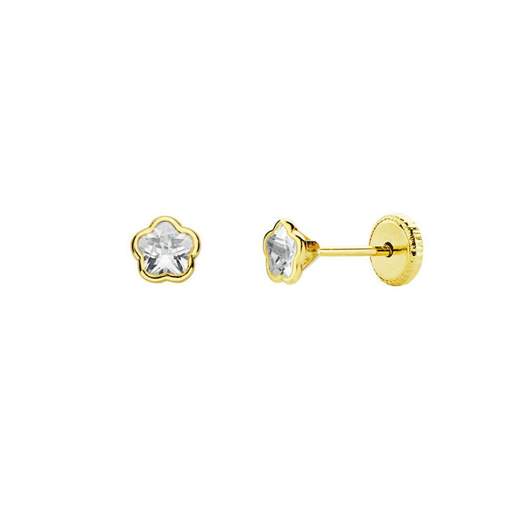 Pendientes Niña oro Amarillo 9K Flor Piedra Circonita Brillo