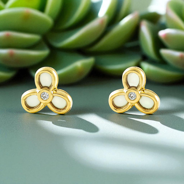 Pendientes oro Amarillo 9K Trébol Nácar Madre Perla Brillo