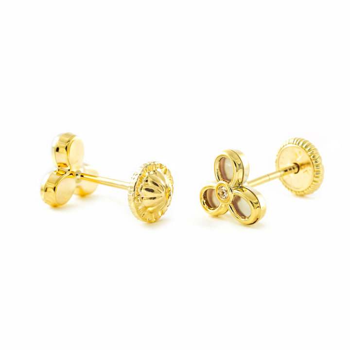 Pendientes Niña Mujer oro Amarillo 9K Trébol Nácar Madre Perla Brillo